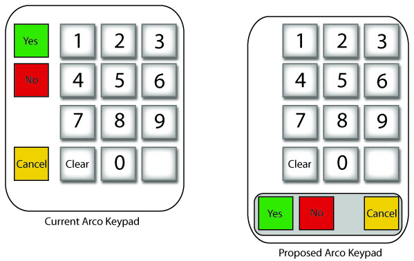 So I go in the store. “You have to touch the ‘No” button” the attendant informs me. So I go back out. Hmm, no “No” button. What if..? So I insert my card, this time trying the green label– AHA! It’s a membrane button. Same with the No button. Okay. So I get that they wanted separate buttons for these actions. Good idea, bad follow through. Below is a graphic I put together of what they have and what I think they should have instead..