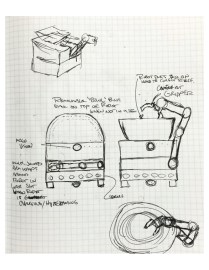 This little guy uses a series of stacking “bowl” type containers – each one for a different purpose, i.e. toys, electronics, food/containers (messy juice boxes), and clothes. The arm actually semi-wraps around the robot near the base in a channel to be out of the way when not in use. When activated, the robot removes all the bowls (which are stacked on top in a recess), sets them down and then puts one back on, right side up into the recess. Each bowl has an RFID tag so the robot knows which is which, and then goes off to pick up the items that match the container type.